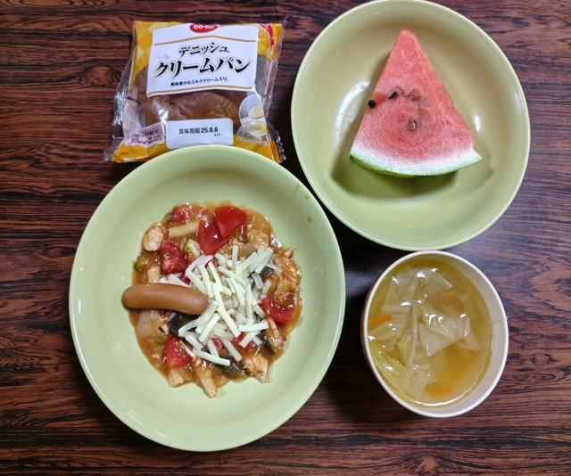 8月夏休み給食トマトグラタン&クリームパン②(令和7年8月6日)
