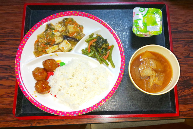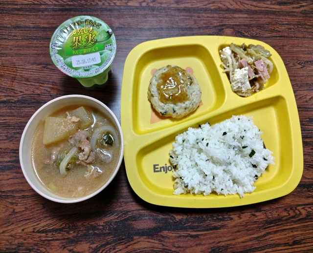 8月夏休み給食豆腐ハンバーグ&野菜炒め①(令和7年8月7日)