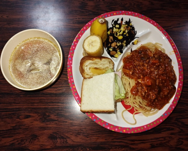 8月夏休み給食スパゲッティー&チキンスープ①(令和7年8月13日)
